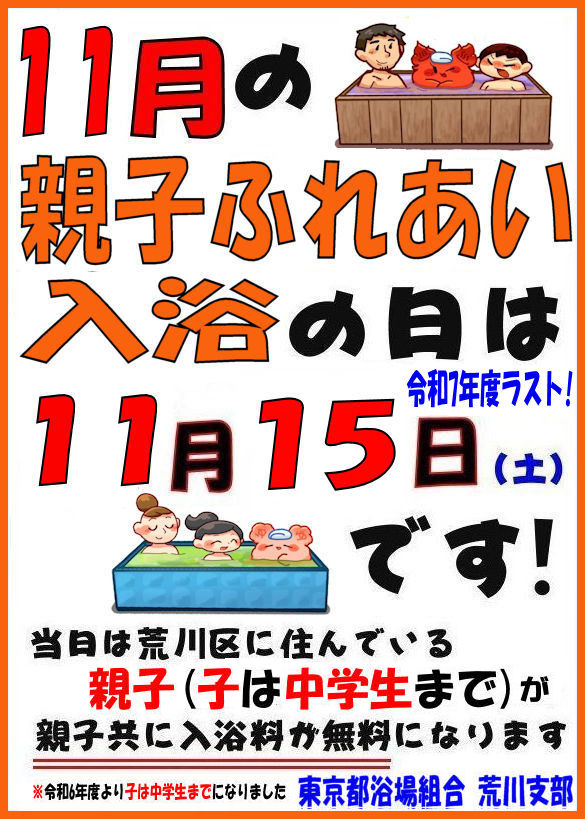 すだち湯当日は親子同伴でお子様(小学生まで)の入浴料金は無料になります