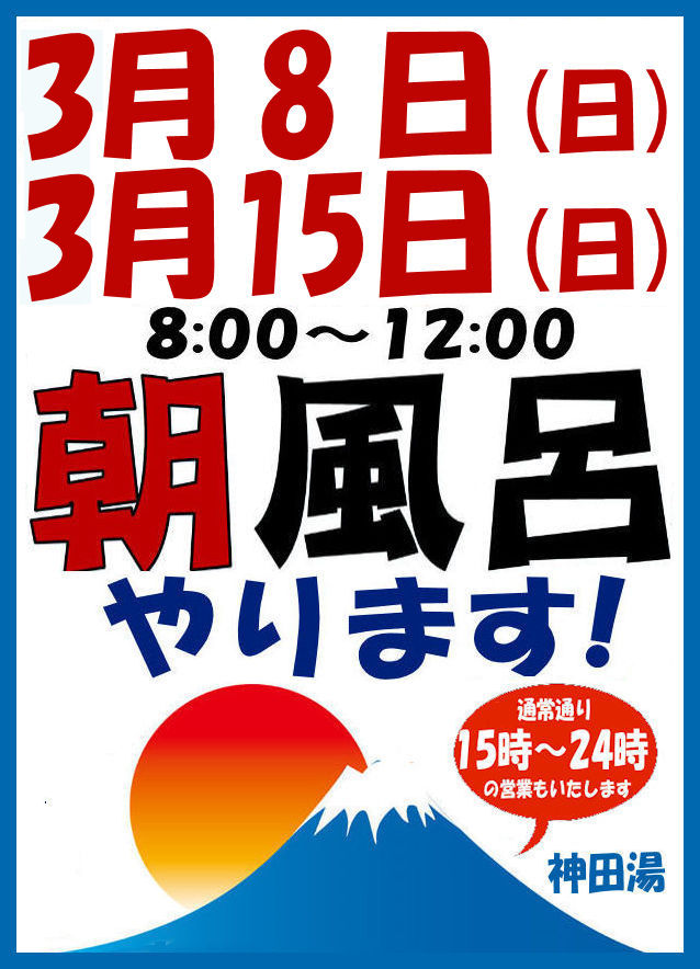 3月は2回「朝風呂」やります