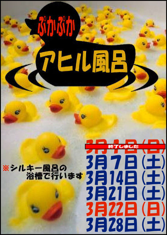 3月も「ぷかぷかアヒル風呂」やりますよ~♪