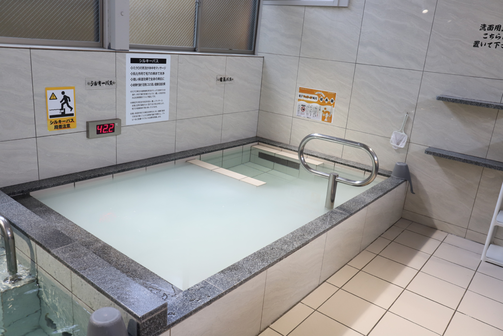 白くやわらかな[シルキーバス]に身を沈めれば、毛穴の奥までほどけていく感覚を味わえ、肌がつるりと整うと評判。[ジェットバス]、[電気風呂]、、、と湯船ごとに異なる感覚を味わえ、気づけば、あっという間に時間が過ぎている。